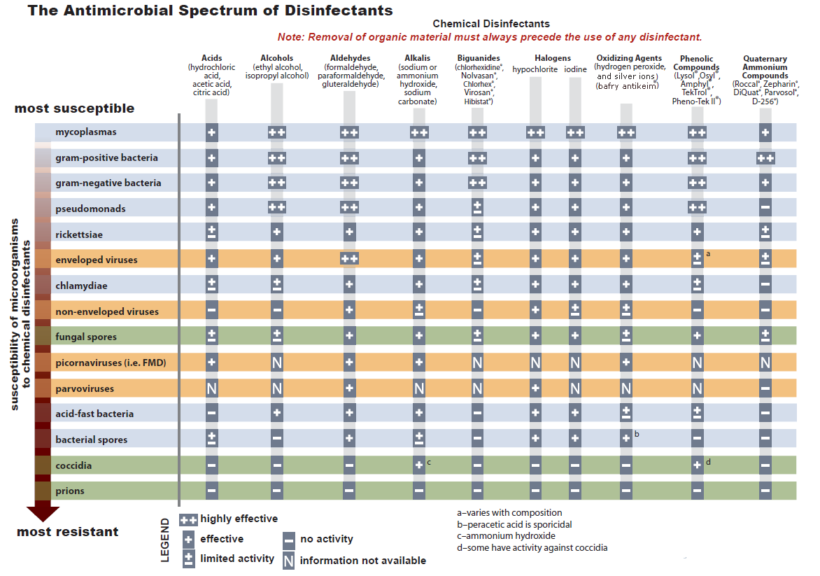 D-Euterpflege is effective against many bacteria and viruses related to intensive farming applications. A few of them are indicated below, but the complete activity spectrum of D-Euterpflege is much wider.