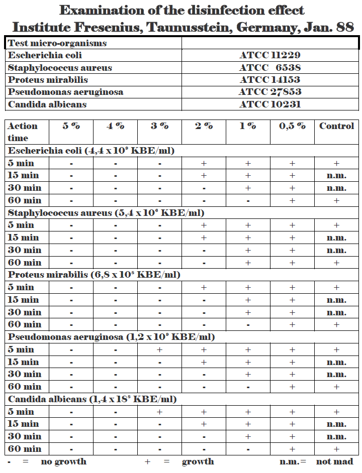 Both disinfecting components (H2O2 and silver ions) have a synergetic effect. The germicidal effect is faster and more efficient as with the individual substances.