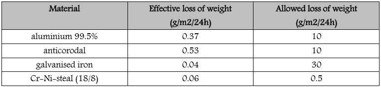 | Corrosion properties: | Corrosion-resisting are aluminium 99.5 % (free of iron), Cr-Ni-steal, e.g. 1.4301, 1.4401,1.4571, plastics as polypropylene, polyethylene, polyvinyl chloride. Varnish coatings andlining materials which are used in swimming pools or storage containers for instance should be tested in pre-experiment |