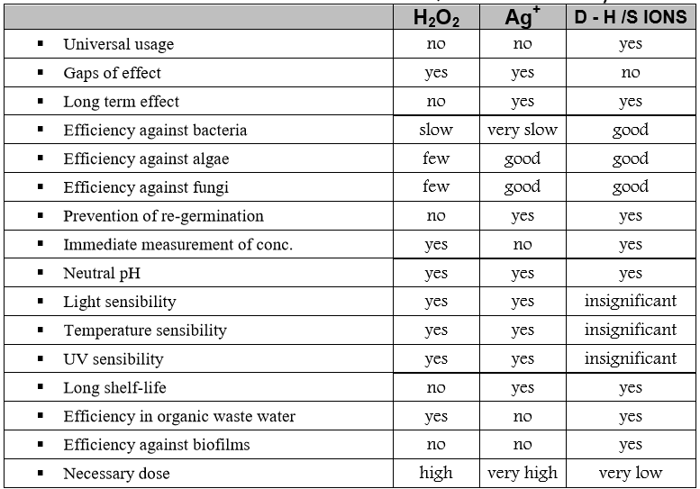 Due to the good efficiency of D - H /S IONS against bacteria, viruses, amoebae, germs and algae only this product is necessary in all applications of disinfectant.