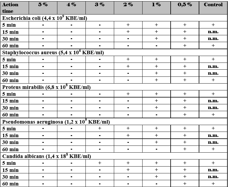 Both disinfecting components (H2O2 and silver ions) have a synergetic effect. The germicidal effect is faster and more efficient as with the individual substances.